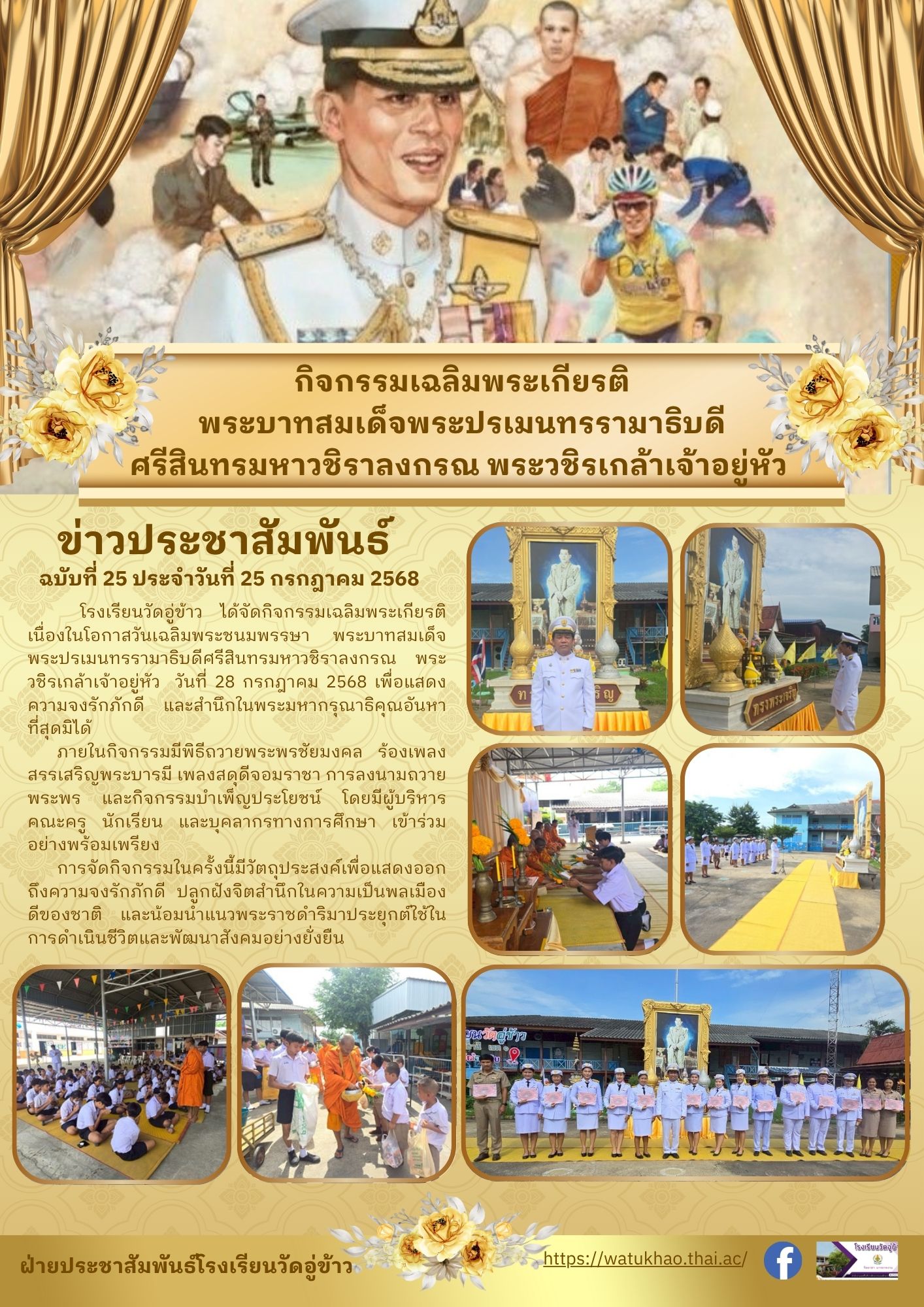 โรงเรียนวัดอู่ข้าว ได้จัดกิจกรรมเฉลิมพระเกียรติเนื่องในโอกาสวันเฉลิมพระชนมพรรษา พระบาทสมเด็จพระปรเมนทรรามาธิบดีศรีสินทรมหาวชิราลงกรณ พระวชิรเกล้าเจ้าอยู่หัว วันที่ 28 กรกฎาคม 2568 เพื่อแสดงความจงรักภักดี และสำนึกในพระมหากรุณาธิคุณอันหาที่สุดมิได้