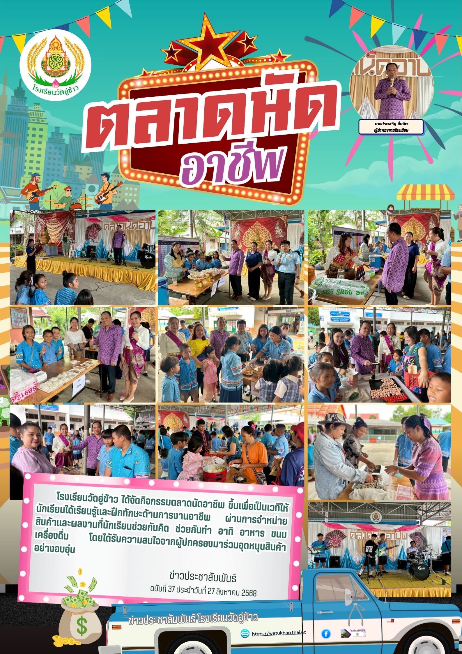 โรงเรียนวัดอู่ข้าว ได้จัดกิจกรรมตลาดนัดอาชีพ ขึ้นเพื่อเป็นเวทีให้นักเรียนได้เรียนรู้และฝึกทักษะด้านการงานอาชีพ ผ่านการจำหน่ายสินค้าและผลงานที่นักเรียนช่วยกันคิด ช่วยกันทำ อาทิ อาหาร ขนม เครื่องดื่ม โดยได้รับความสนใจจากผู้ปกครองมาร่วมอุดหนุนสินค้าอย่างอบอุ่น
